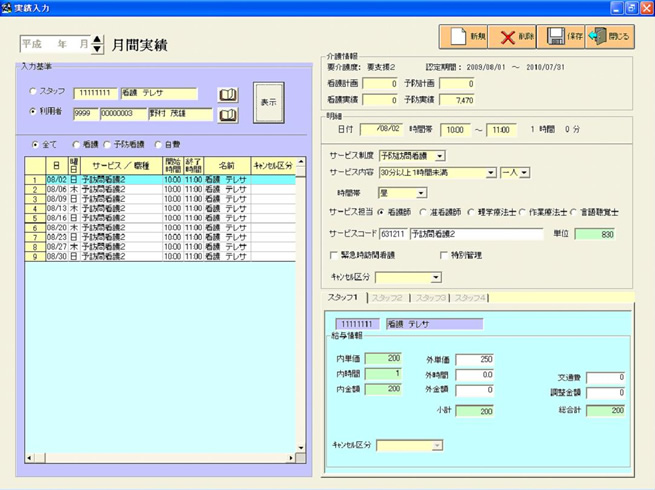 スケジュール、ケア内容、スタッフ給与をトータル管理!業務を強力バックアップ!