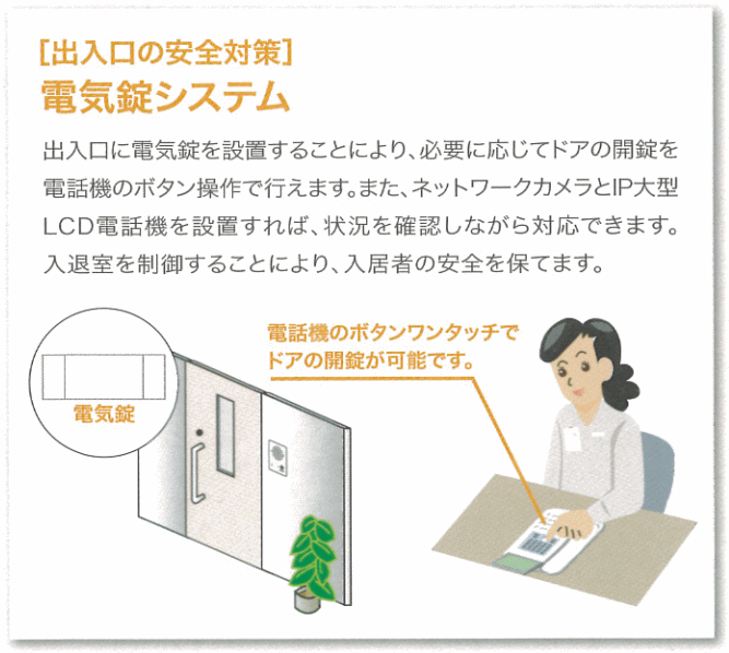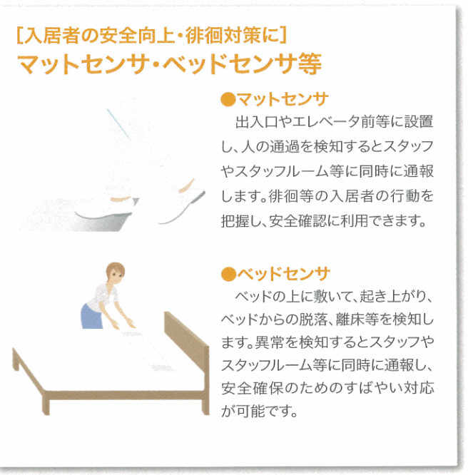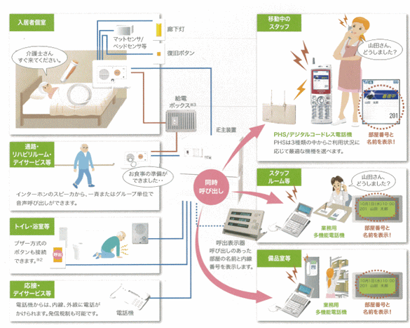 1.入居者からの緊急コールに対して介護士、看護師へスムーズに連絡が取れ対応ができ、